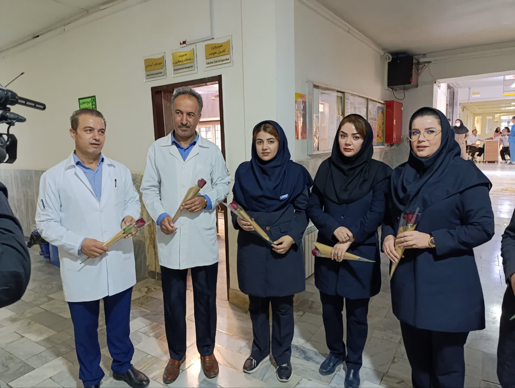 پاسداشت خدمات پرستاران بیمارستان قدس در روز ملی پرستار با حضور رییس دانشگاه و جمعی از اعضای هیات رییسه و مدیران دانشگاه علوم پزشکی کردستان از مقام رفیع و خدمات بی وقفه پرستاران در روز پرستار تجلیل شد و با اهدای دسته گل و شیرینی قدردان زحمات شبانه روزی پرستاران بودند.