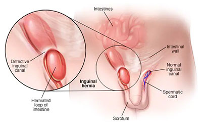 عود فتق: وجود تورم سفت، دردناک، و برگشت ناپذیر در ناحیه کشاله ران