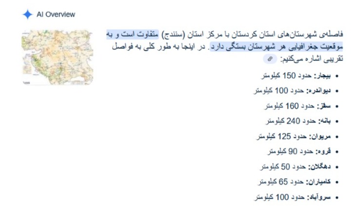 فاصله شهرستان های استان کردستان تا مرکز استان (سنندج)