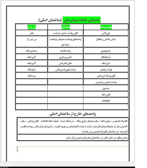 واحدهای پاراکلینیکی شامل:آزمایشگاه–رادیولوژی –سونوگرافی--اسپیرومتری و آندوسکوپی