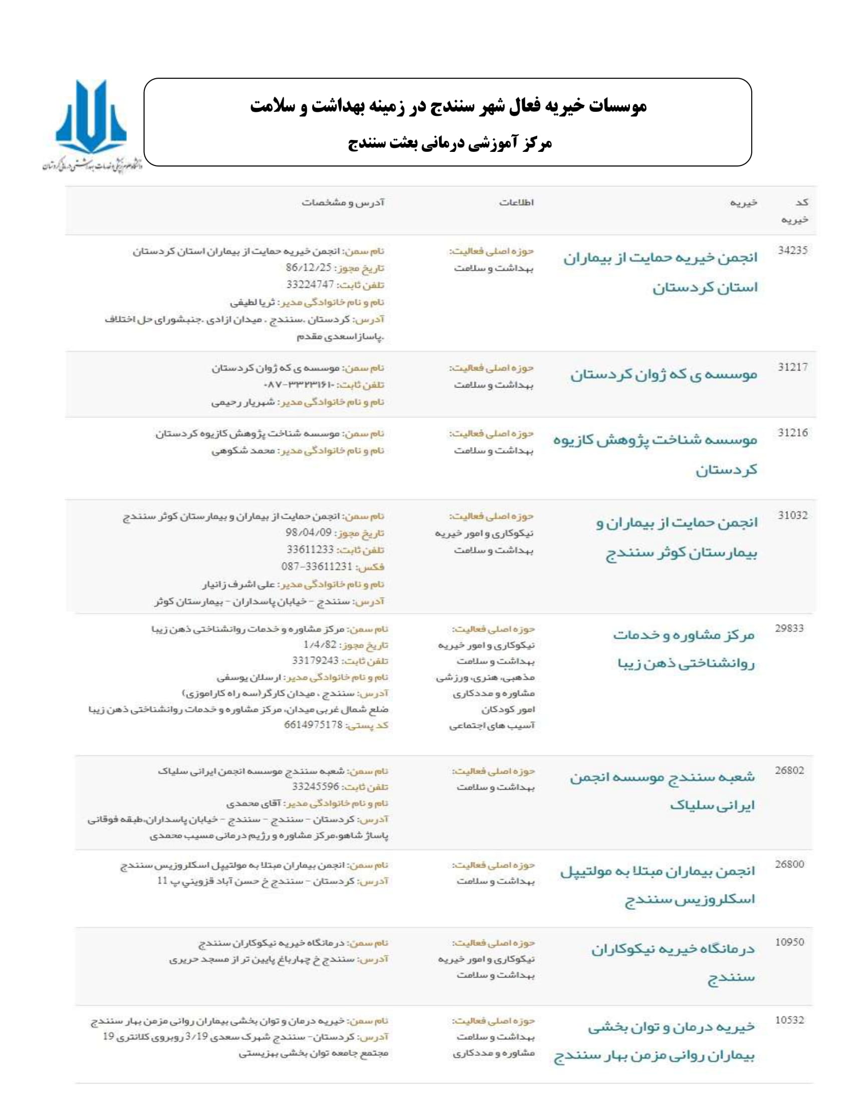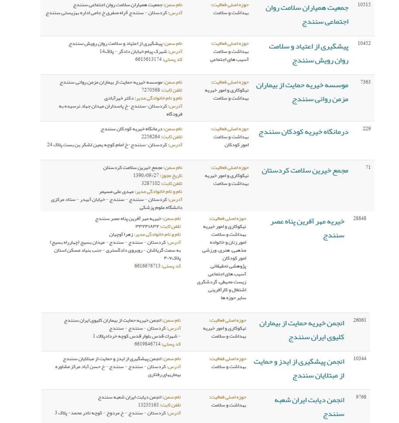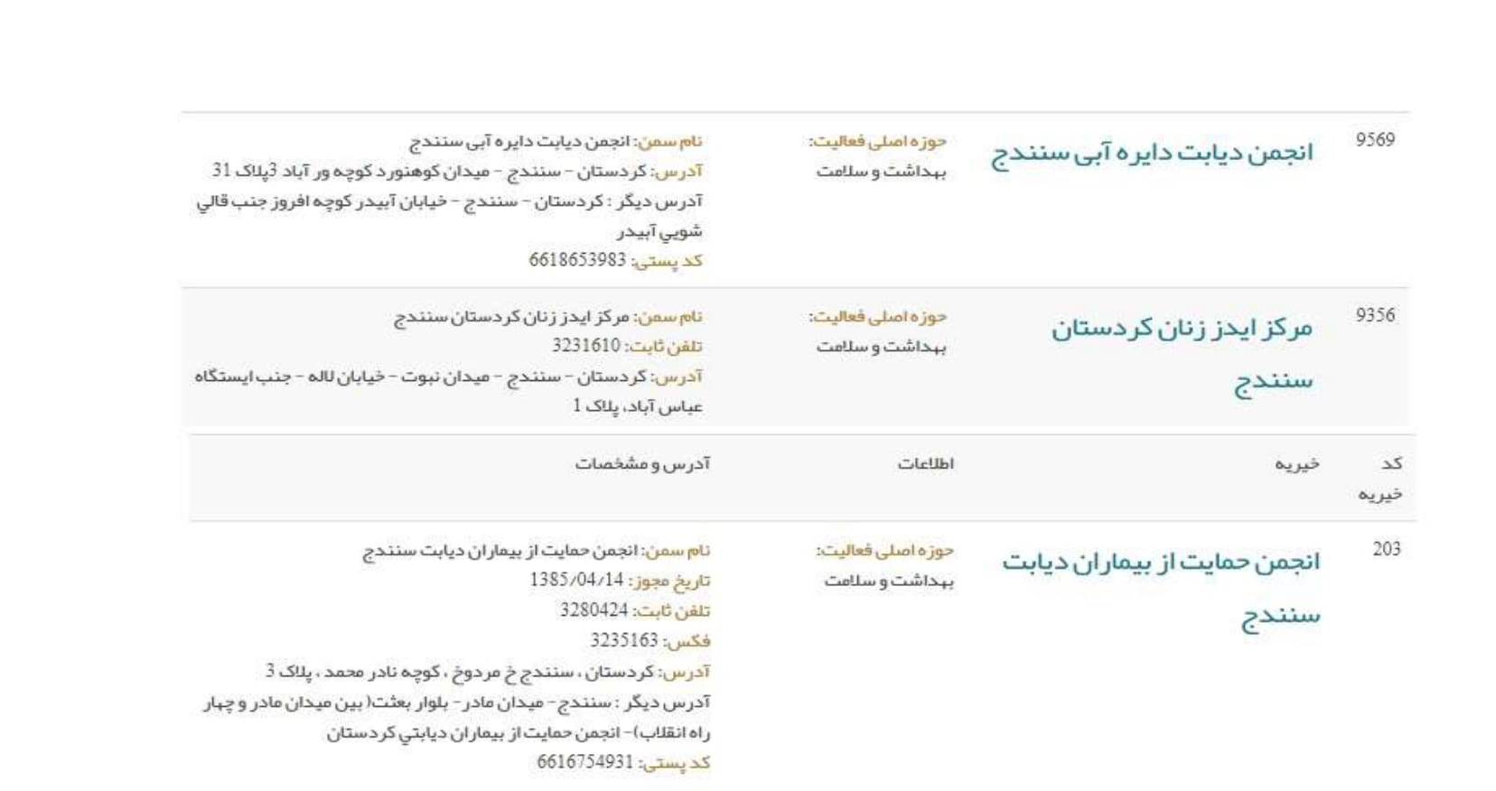 موسسات خیریه سنندج